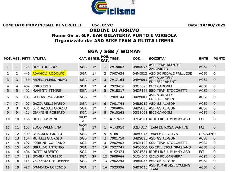 10° MEMORIAL "SANTO FILIPPONI" 29 giu 19