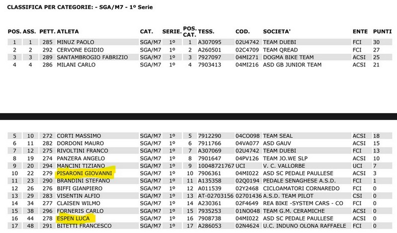 Risultati Agonismo
