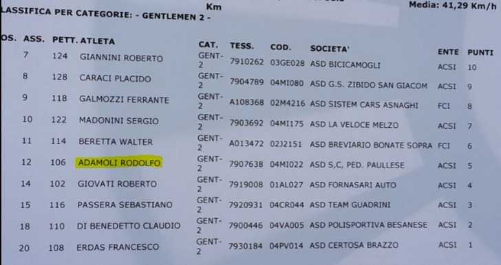 Luca Espen vince il campionato Italiano dei Gent 1 piazzandosi IV assoluto nella gara agonistica con partenza unica riservata ai dipendenti universitari.